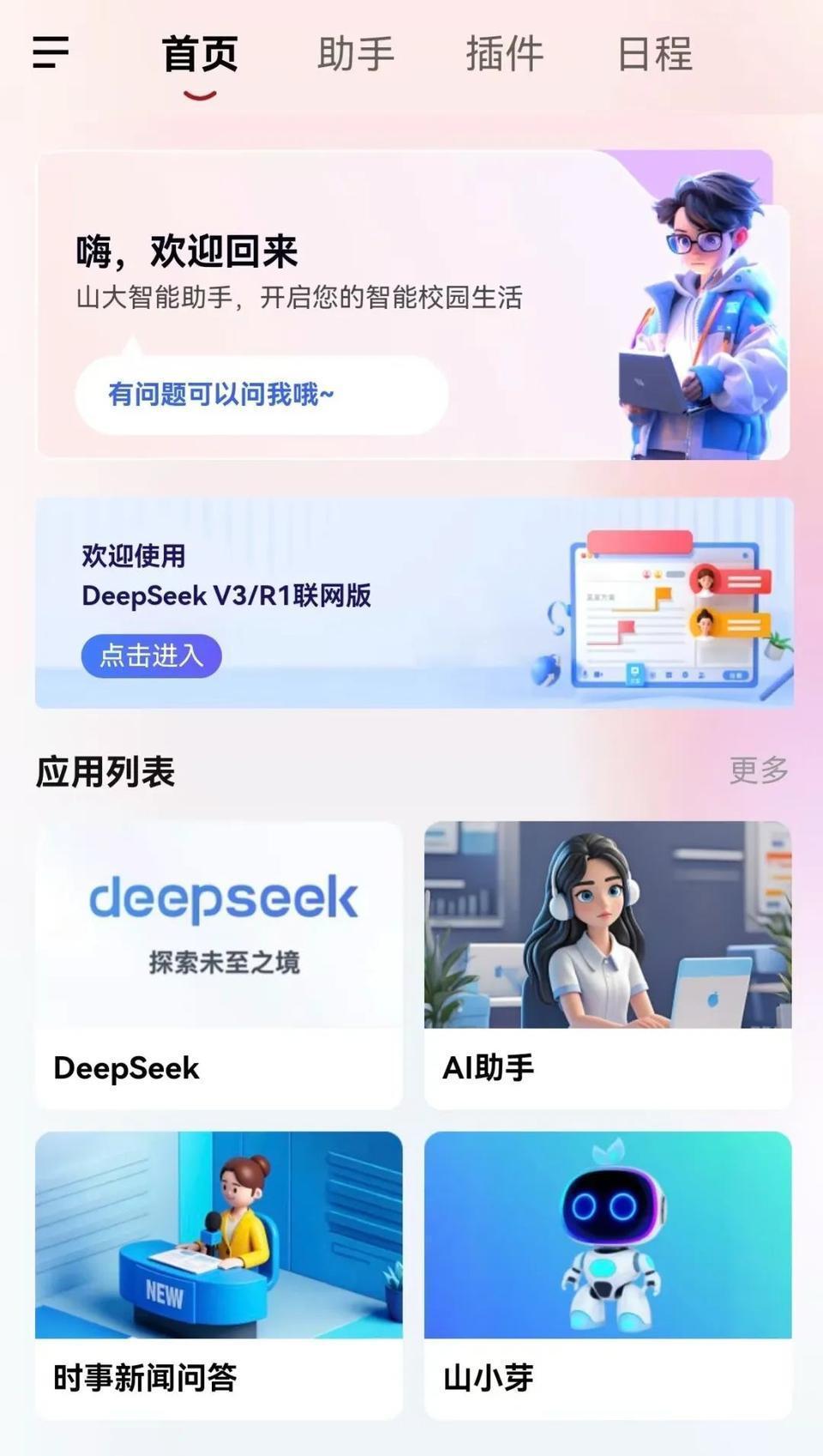 (2)山大智能助手App打开“山大智能助手”App在首页可以直接进入DeepSeek哦