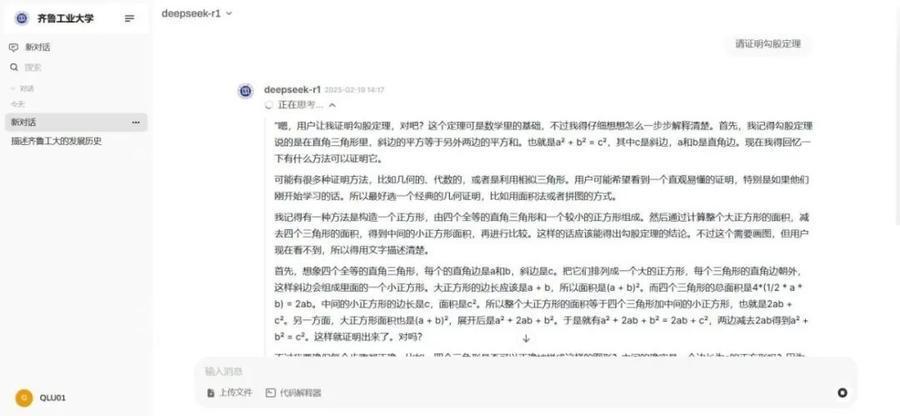 近日,齐鲁工业大学(山东省科学院)成功部署了本地版DeepSeek-R1-671B大模型,开启内测,并完成了与校(院)智慧门户对接,内测结束后,所有师生均可通过统一身份认证登录使用本地版DeepSeek。由此,齐鲁工业大学成为国内首批实现千亿参数级国产大模型全量部署的高校。